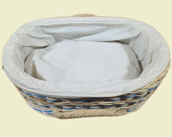 100% natural and biodegradable rattan with soft blue accents, cotton liner and resting pad