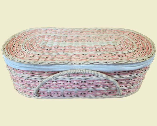 100% natural and biodegradable rattan with soft pink accents, cotton liner and resting pad