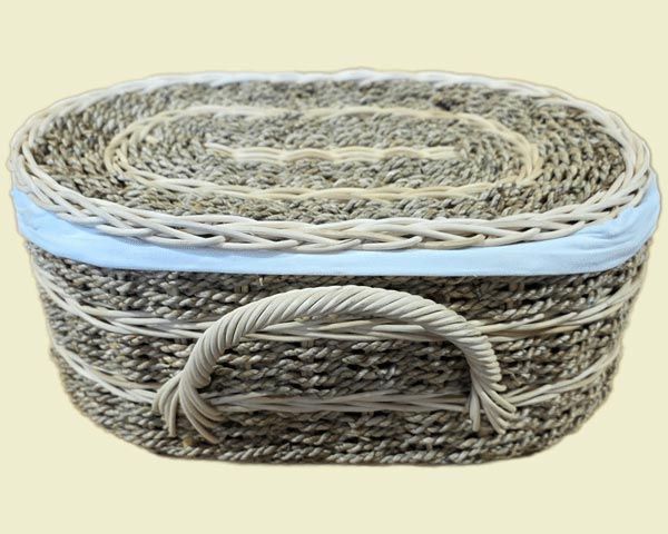 While caskets are not required, families may build their own or purchase one from a third party. Great River Natural Burial also offers a selection of caskets that are 100% natural and biodegradable. These hand-woven caskets include a cotton liner and resting pad and are available in two sizes: Small (14″ × 8″ × 4.5″ interior) and Large (25.5″ × 12.25″ × 6.5″ interior). Please contact us for current pricing.